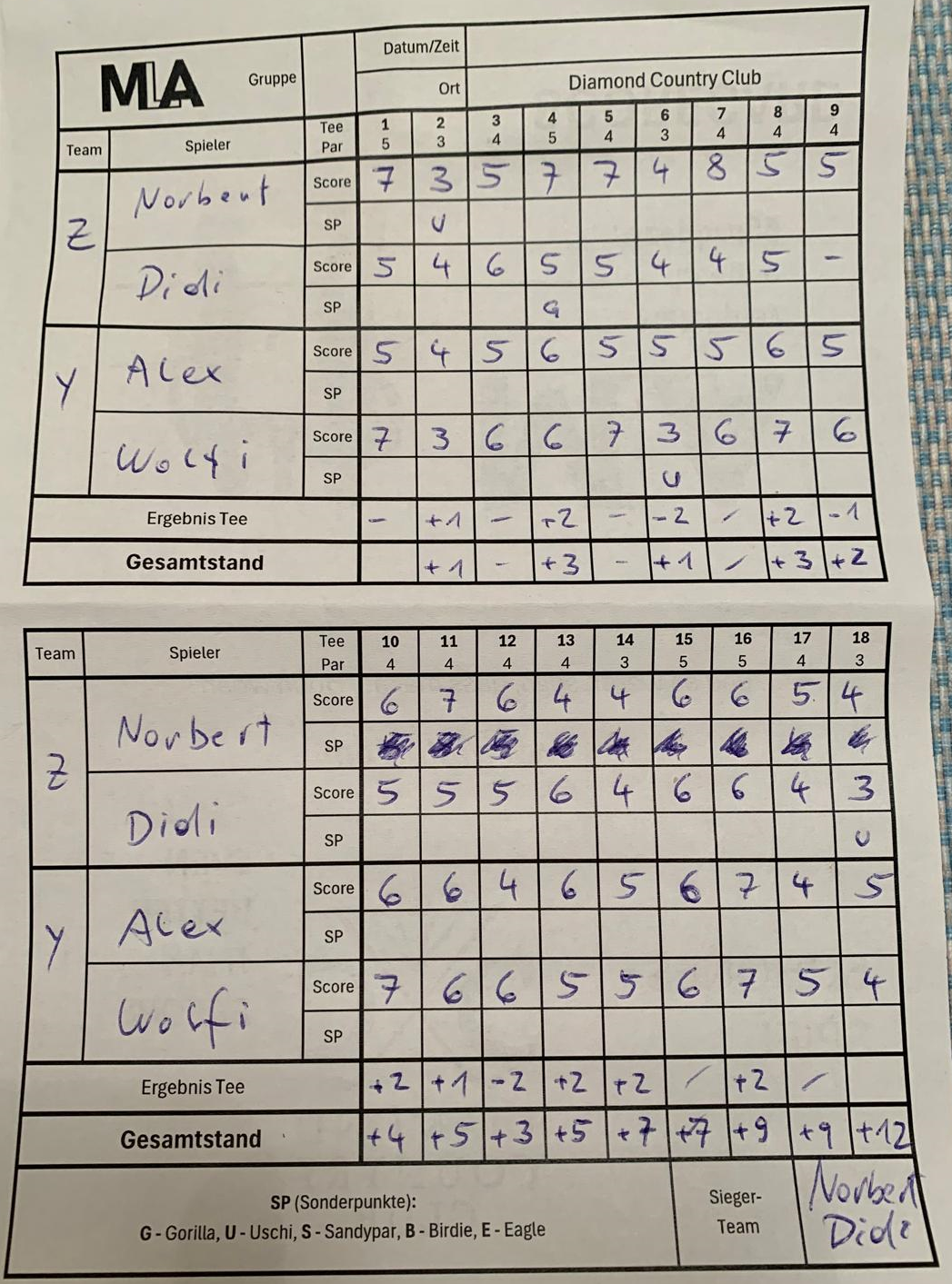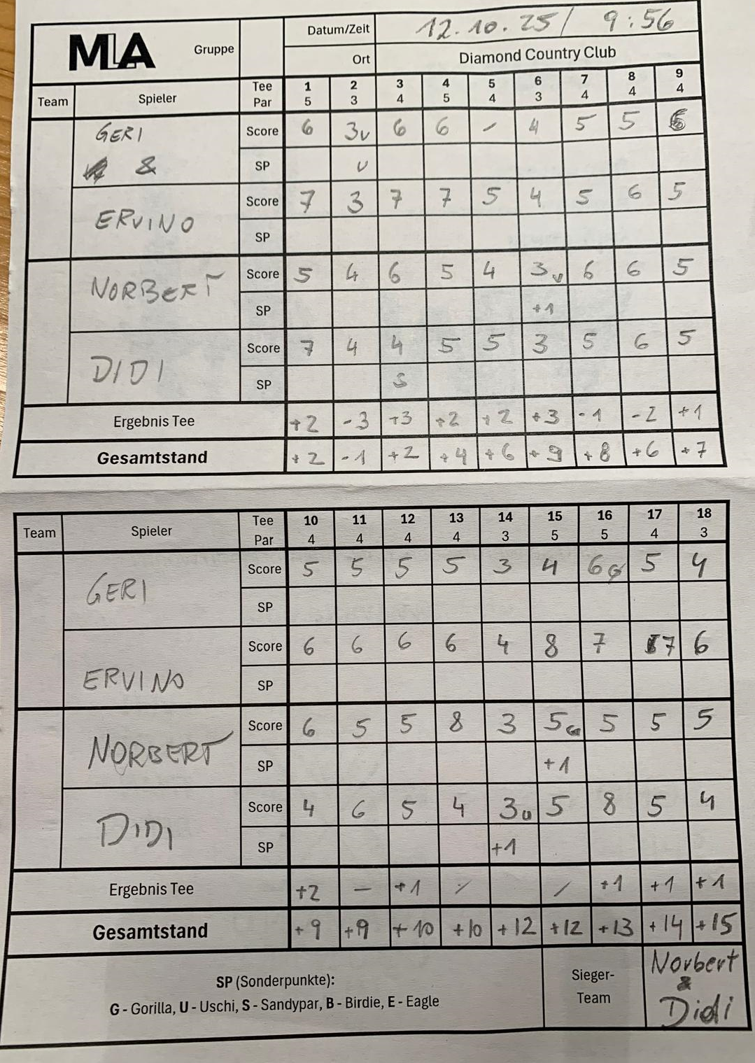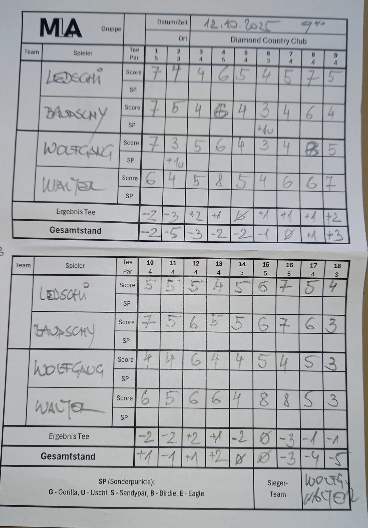 TEAM | TEAM | Datum | Golfplatz | Teetime | Scorecard |